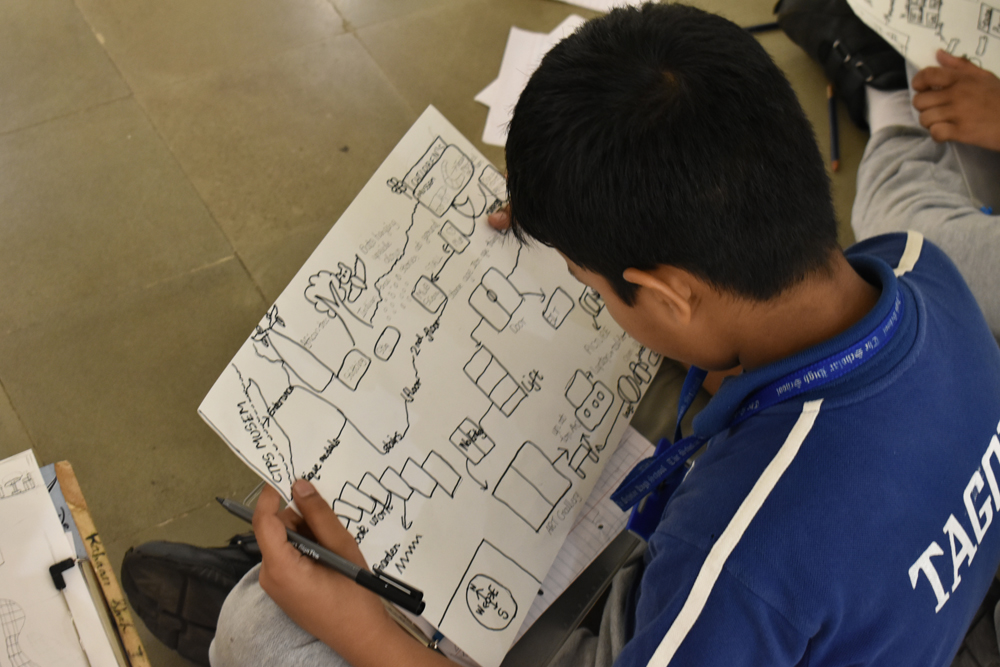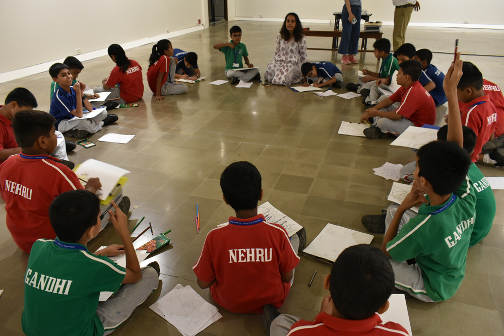 Taking a bit of inspiration from Foy Nissen's hand-drawn maps, this workshop was conducted on map-making. Participants - school students from Scholars High School- were taken on a walk around the Kala Ghoda art precinct and museum premises by Alisha Sadikot of The Inheritage Project, exploring how and why this neighbourhood was built. Students were asked how these spaces are used today, and by whom, to make their very own museum maps!