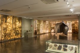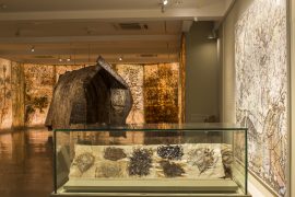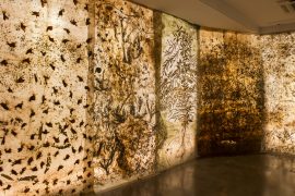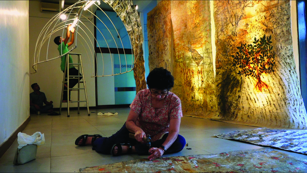 Working with organic material – medicinal seeds, roots, dry leaves, sap, dry flowers, nature is both the subject and substance of her art. It is both context and content for her ruminations on inhabiting and preserving the earth.