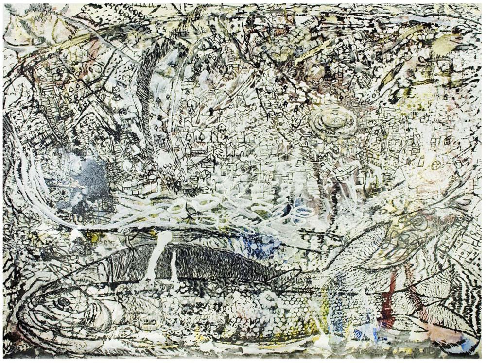 Inventing her own art making techniques, using organic material and varied kinds of papers, her installations in the form of paper scrolls remain unique in their conceptions and execution. Her works are autobiographical and dream-like in nature. Her ink on paper sketches are exercises in transition and transform personal experience into mystical truth. She experiments with an exciting variety of media like rice paper, tissue and cellophane. In her works, she uses superimposed forms, quite like the sketches that cave painters worked on before they mapped them on the walls of caves. Her imagery, because of her fluid and transparent images, reflect the present mood of the world, which is fluid in itself. At a mere conventional and figurative level, her works reflect the unity of man with nature. Motifs such as dogs, waves and serried crescent shapes recur in her works.