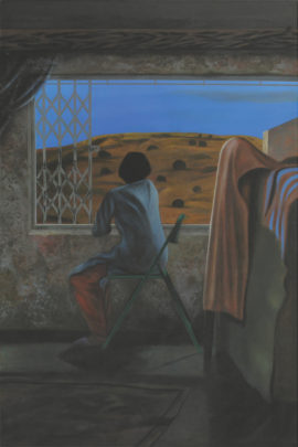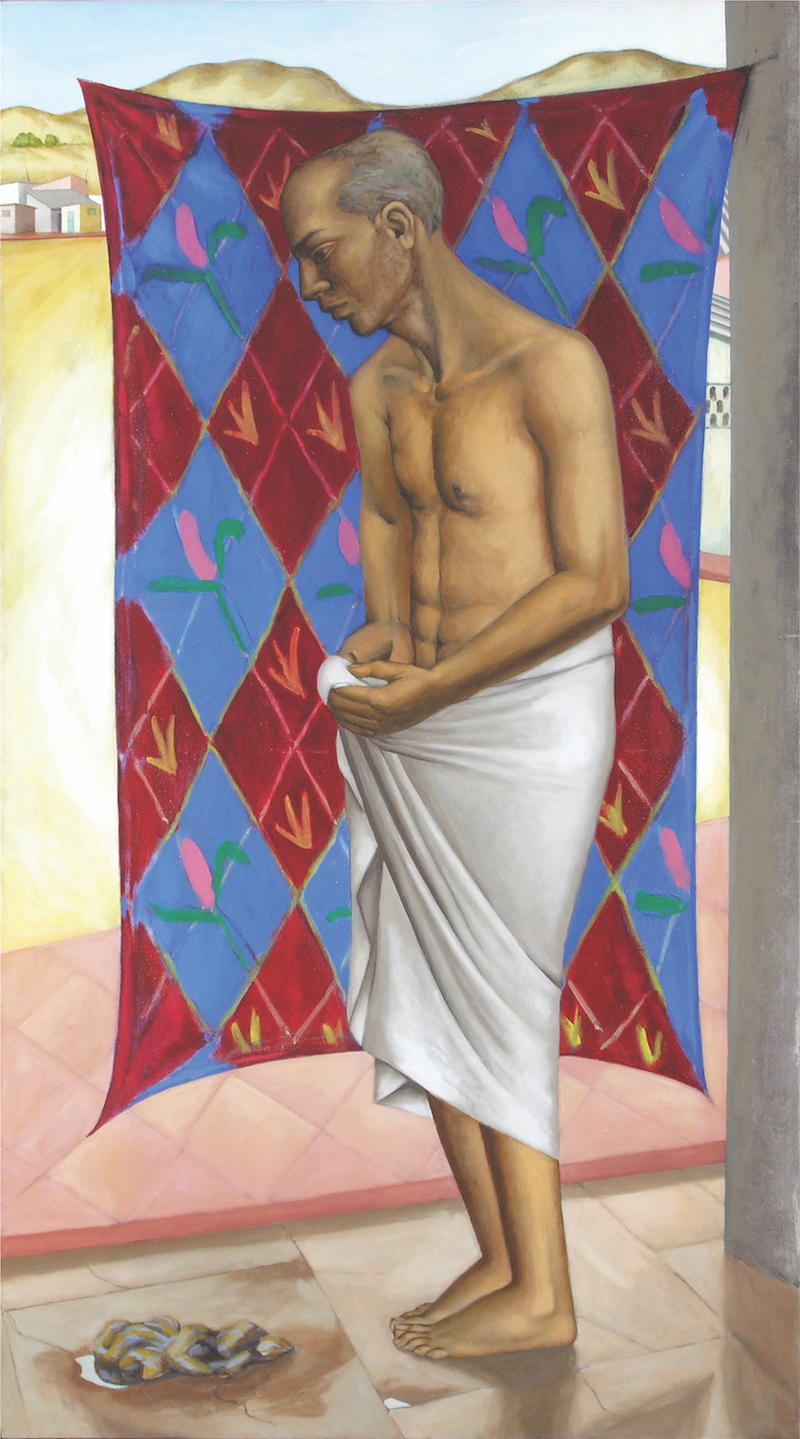 Patwardhan uses scale to maintain an emotional distance from his subject. Recording landscapes in transition has been a lasting interest for him. He often paints the suburbs, shanty towns and satellite townships where his subjects work and live.