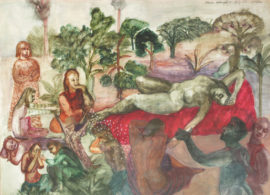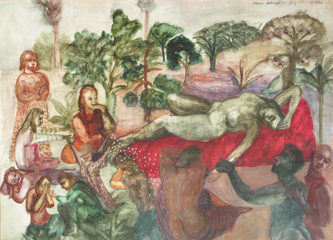 Committed to social activism in her art, much of her work is consciously political. In the 70’s her themes explore male aggression, gender based violence, marginalization of the vulnerable and are about female identity-the image of the woman destroyed is a recurring one. As art critic Geeta Kapur has pointed out from early in her work, “Malani introduced female trauma as the subject matter in her work. She has drawn on myth, legend, cultural history and literature recreating archetypal figures like Sita, Radha, Medea and Lewis Carroll’s Alice to retell stories of women’s suffering.”
