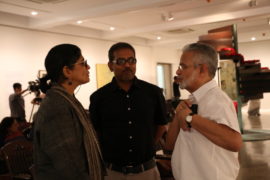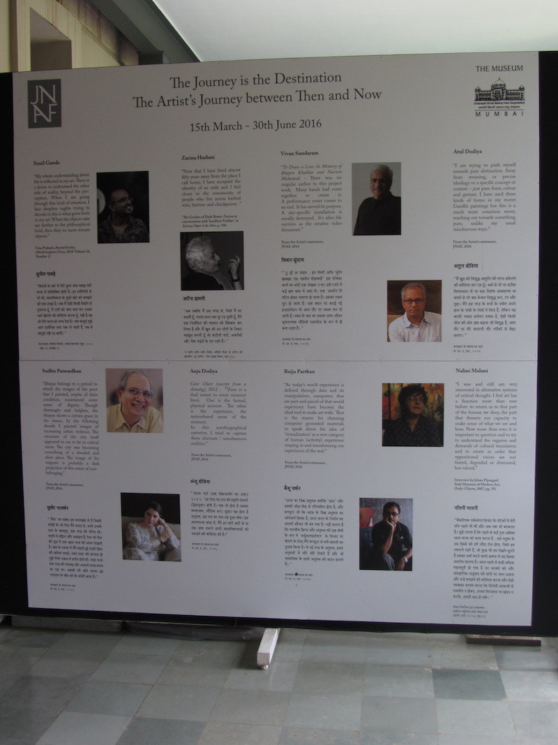 The exhibition traced the journeys of eight artists whose work Jehangir Nicholson admired and pursued and whose practices have undergone significant changes over the years.: Anju Dodiya, Atul Dodiya, Baiju Parthan, Nalini Malani, Sudhir Patwardhan, Sunil Gawde, Vivan Sundaram and Zarina Hashmi.