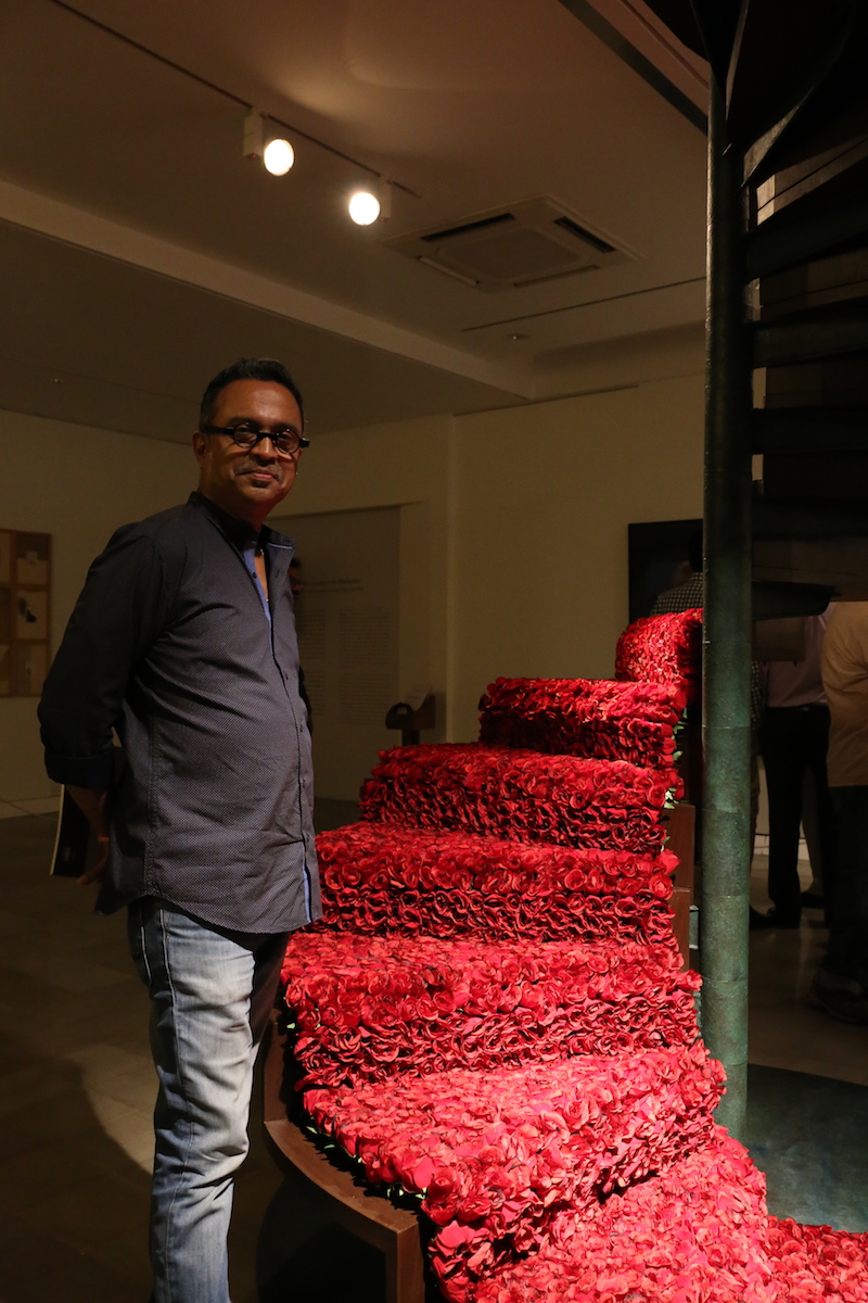 His artistic life history includes important way stops at the 53rd Venice Biennale with the two ton kinetic piece ‘Alliteration’ in the Arsenal ‘Making Worlds’ at the 53rd Venice Biennale, was curated by Daniel Birnbaum in 2009; this art work was also re-exhibited at Kunstmuseum Bochum, Germany in an exhibition titled ‘Sparsha’ curated by Thomas Hensolt in 2014; the razor blade garland ‘Virtually Untouchable’ for ‘Paris-Delhi-Bombay..’ curated by Sophie Duplaix and Fabrice Bousteau, Centre Pompidou, Paris, France in 2011; the 12 foot stainless steel pendulum ‘Vicious Circle’ for the event ‘Finding India’ MOCA (Museum of Contemporary Art), Taipei, Taiwan 2010; the famous gigantic ‘Blind Bulbs’, dominating Jumeira Beach for the special project ‘Gulf Art Fair’ in 2007.