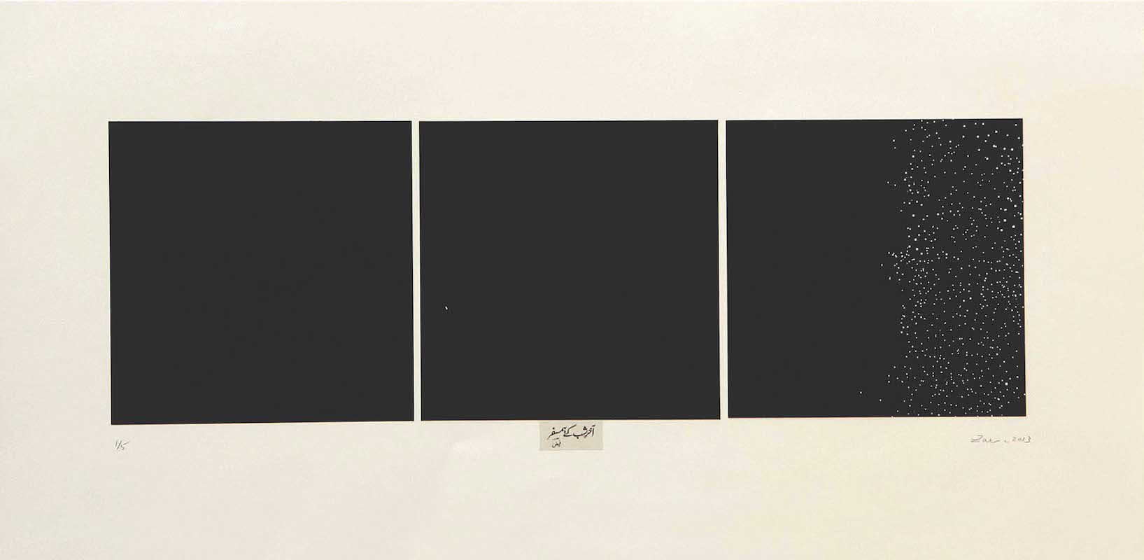 Examples of her work are in the permanent art collections of the Museum of Modern Art, Whitney Museum of American Art, Victoria and Albert Museum, and Bibliothèque Nationale de France. Zarina was one of four artists/artist-groups to represent India in its first entry at the Venice Biennale in 2011.