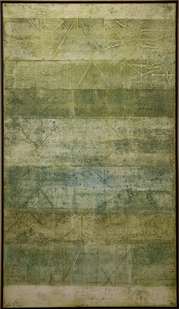 Although he was considered an abstract painter, he preferred calling his work “non-objective”, and believed that “there is no such thing as abstract art.” Gaitonde’s paintings, evocative of subliminal depths, are known for their spiritual quality and characteristic silence that is as meditative as it is eternal and momentous. The plain, large surfaces of layered paint possess an inherent quality of light. The textural structure along with the interplay of colour is the main aspect of his works. His compositions, inspired by zen philosophy reveals his speech and emotes silence. Art, for Gaitonde, was a process complete in itself. In exploring his inner spaces and transient realities, it helped him move towards himself. His paintings bring out fact that the process is the result. He worked with various mediums, and used a roller and palette knives to create his own layered texture. Over the years, he evolved as a painter who was increasingly more meticulous.