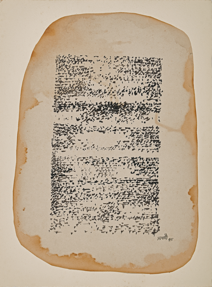 V. S. Gaitonde was born in Nagpur, Maharashtra in 1924. He received a Diploma in Painting from the Sir J. J. School of Art in 1948. Impressed by his work, he was subsequently asked to join the Progressive Artists’ Group.