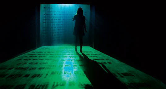 Covering Letter is a piece of historical correspondence beamed onto a curtain of traversable dry-fog; a brief letter written by M. K. Gandhi to Adolf Hitler in 1939 urging him to reconsider his violent means.